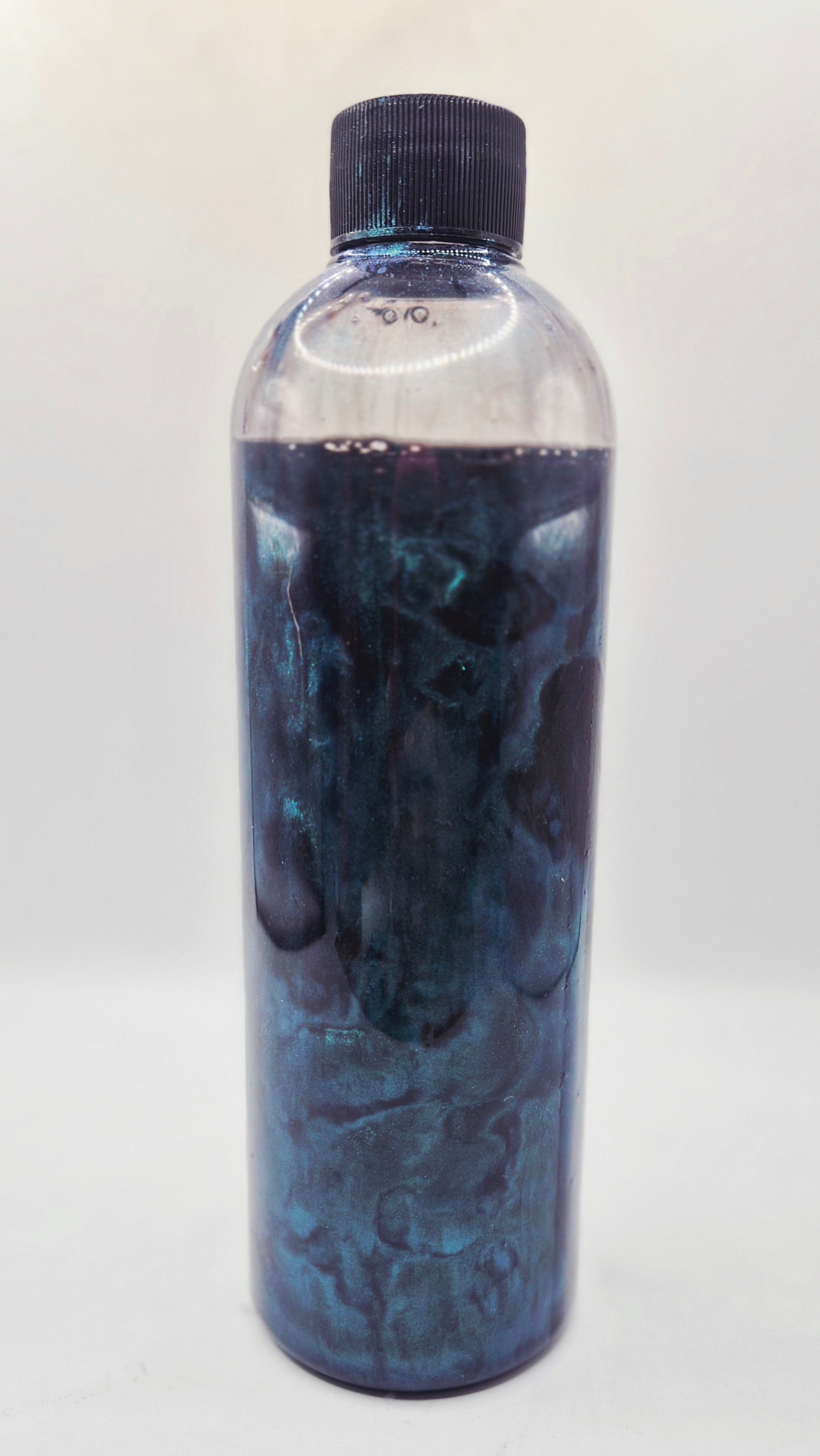 Spellbound Touch™ is a pre-mixed, oil-based, touch-reactive suspension solution designed to create a mesmerizing, living shimmer effect. With every movement, the pigment awakens—flowing, blooming, and slowly settling back into a suspended, cloud-like state.